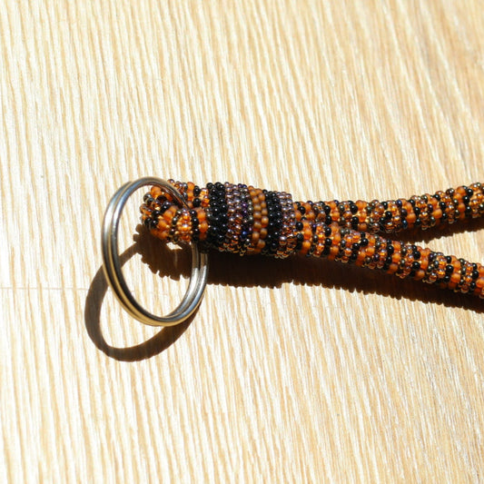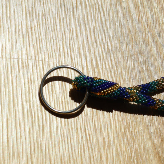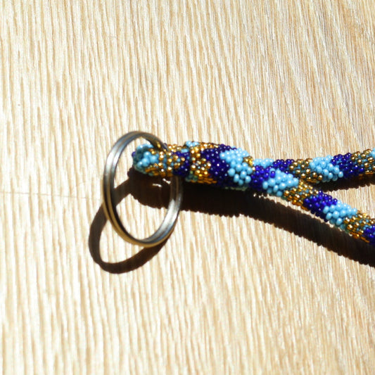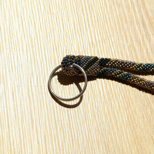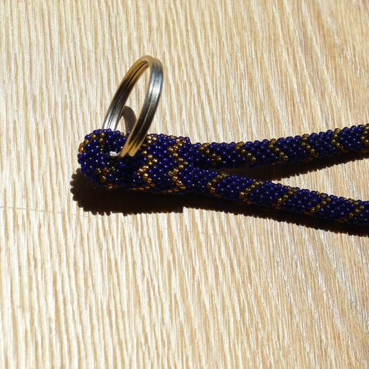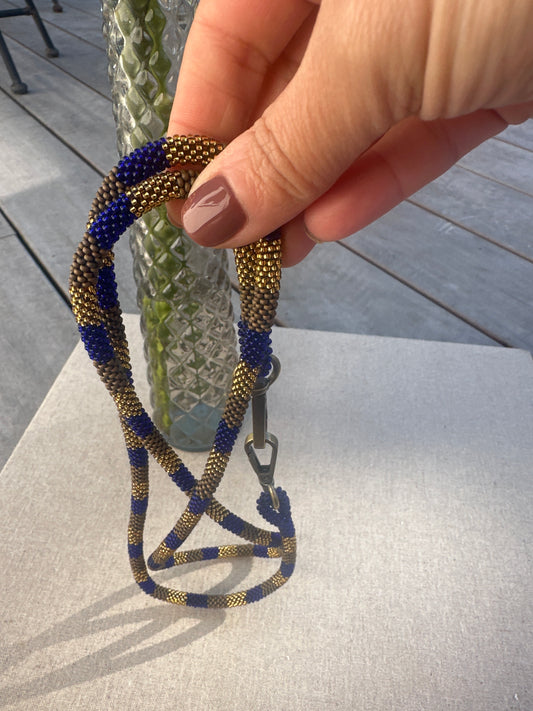 Cordon de Téléphone Portable Népalais en Perles de Verre #A34 bleu marine doré taupe