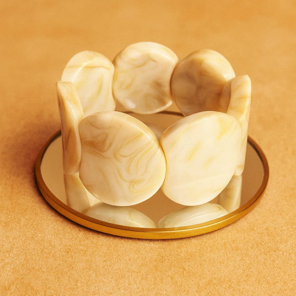 Apportez une note moderne et intemporelle à votre poignet avec le bracelet Moon. Conçu en acétate et monté sur deux élastiques résistants, il allie style et praticité pour un bijou facile à porter au quotidien comme lors de vos occasions spéciales.
