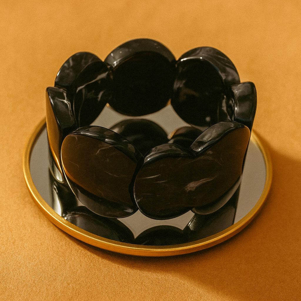 Apportez une note moderne et intemporelle à votre poignet avec le bracelet Moon. Conçu en acétate et monté sur deux élastiques résistants, il allie style et praticité pour un bijou facile à porter au quotidien comme lors de vos occasions spéciales.