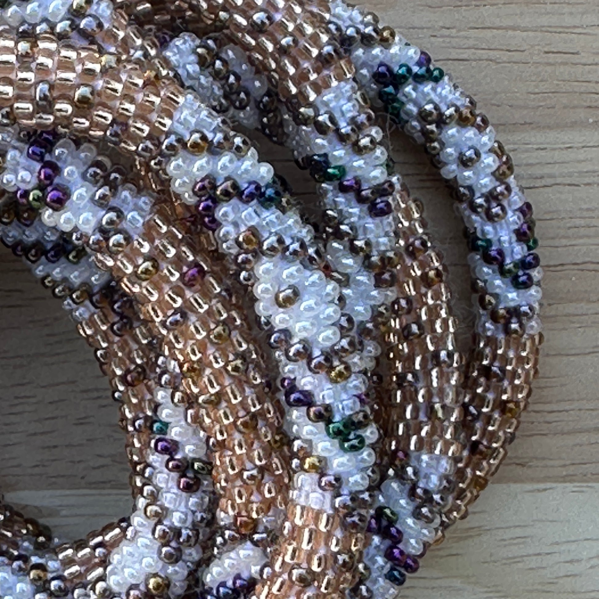 Chaque bracelet est conçu à partir de perles de verre enfilées sur un fil de coton résistant, selon une technique de crochetage en tube, qui donne au bijou toute sa souplesse et son confort. Les motifs et dessins sont parfois inspirés de traditions locales, parfois totalement libres : c’est ce qui rend chaque modèle unique.