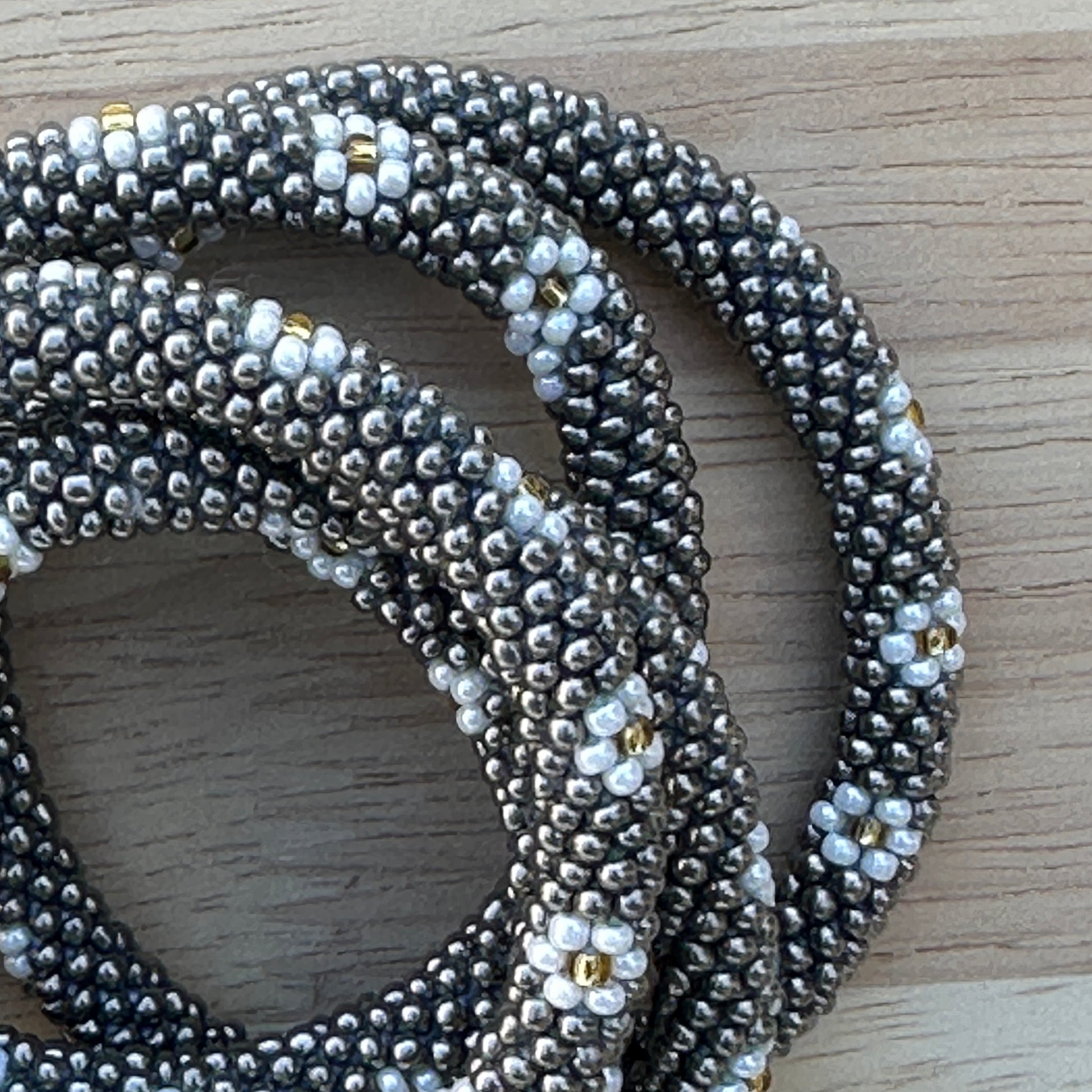 Chaque bracelet est conçu à partir de perles de verre enfilées sur un fil de coton résistant, selon une technique de crochetage en tube, qui donne au bijou toute sa souplesse et son confort. Les motifs et dessins sont parfois inspirés de traditions locales, parfois totalement libres : c’est ce qui rend chaque modèle unique.