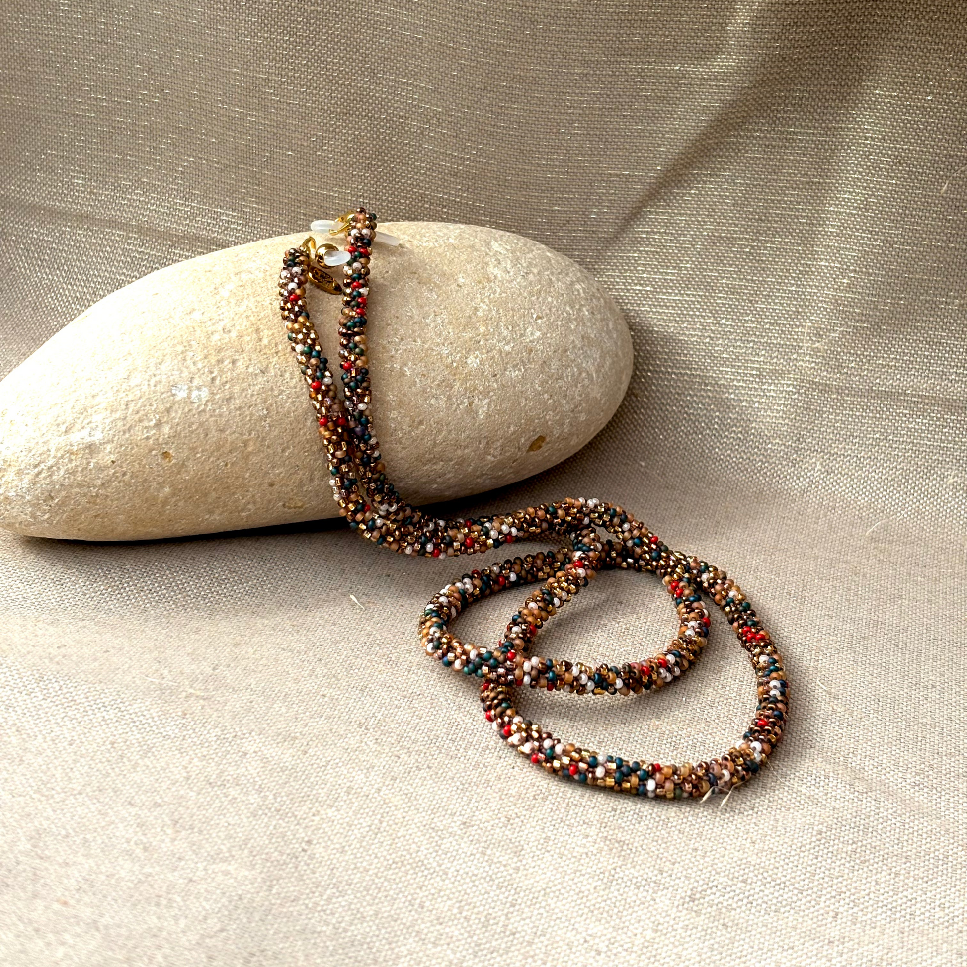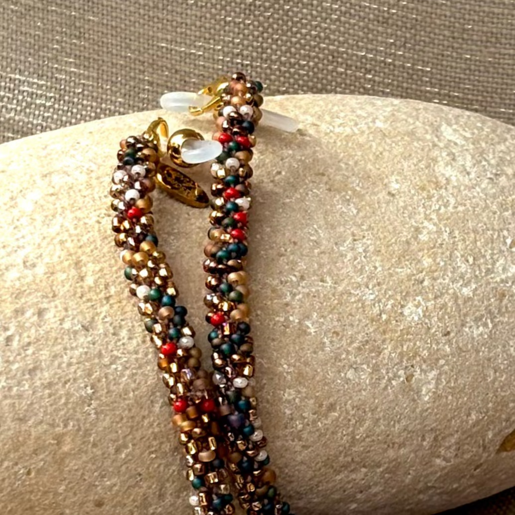 Élégant, pratique et unique, ce cordon à lunettes a été entièrement tissé à la main par des femmes artisanes népalaises, selon un savoir-faire traditionnel. Chaque pièce demande environ 7 heures de travail minutieux, perle après perle, pour un rendu souple, coloré et raffiné.
