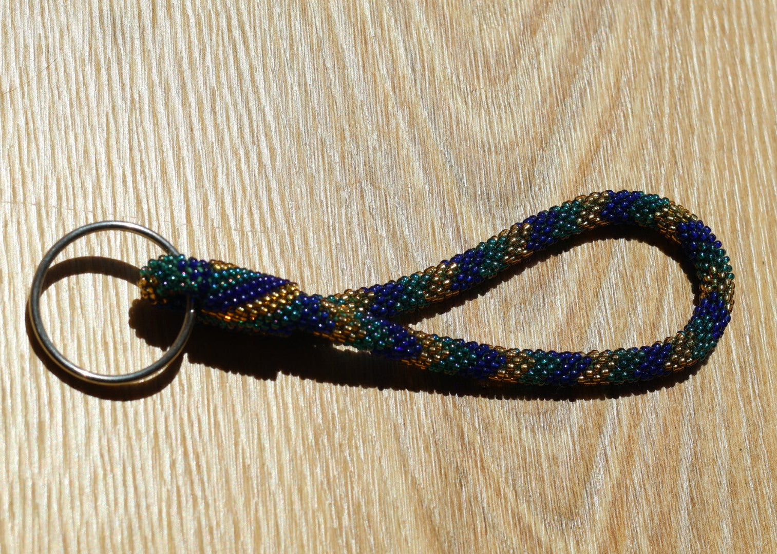 Chaque porte-clés nécessite en moyenne 3h30 de travail manuel. Les perles de verre sont tissées à la main avec patience et précision, puis montées sur un anneau brisé robuste pour une utilisation quotidienne.
